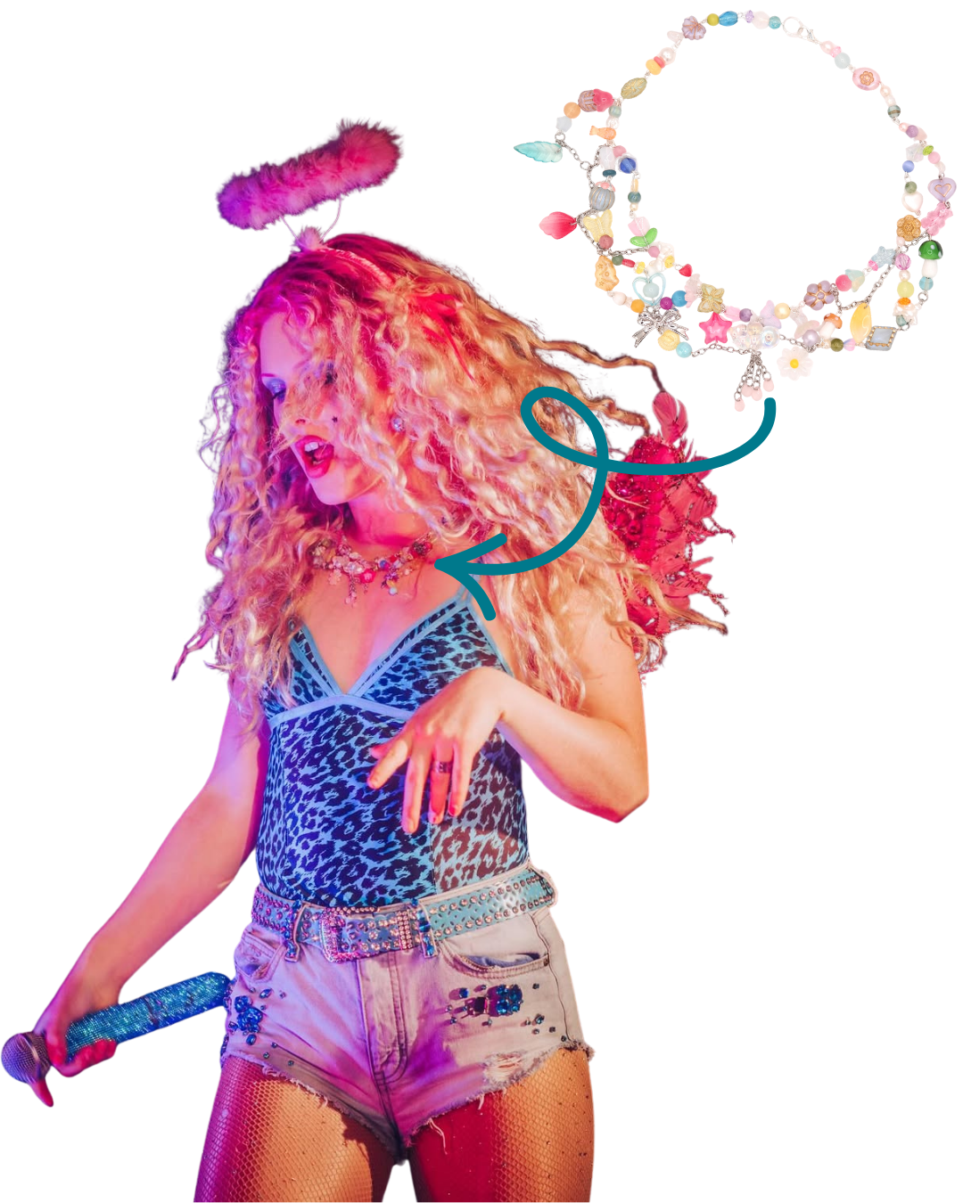 Categories: Select a Category Custom-Made Wearables Howdy Hats Necklaces Earrings Keychains / Carabiners Waist Chains Headpieces Tops Hair Accessories Bag Charms Pants Chains Bracelets Rings Roach Clips Cowboy Carter Chappell Roan Ethel Cain Queer🌈 Activism🇵🇸 Bridal👰 Pink Cowgirl🎀 Artsy Maximalist🎨 Outdoorsy🌿 Floral Fairy🌷 Mermaids🧜♀️ 420🍃 Witchy🔮 Grunge🖤 Birthday🎂 Space🪐 Artsy Maximalist🎨 Quick View Back To School Supplies Beaded Necklace $35.00 Quick View Star & Heart Carabiner Waist Chains $45.00 Quick View Spicy Takeout Food Beaded Roach Clip $20.00 Quick View Lava Lamp Vibes Beaded Roach Clip $20.00 Quick View Glass Dragonfly Beaded Necklaces $35.00 Quick View Lucky Charms Pearl Necklaces $35.00 Quick View Raining Cats and Dogs Kandi Beaded Bracelet $25.00 Quick View Lava Lamp Turtle Kandi Beaded Bracelet $25.00 Quick View Farm Fresh Kandi Beaded Bracelet $25.00 Sold Out Quick View Takeout & Chill Kandi Beaded Bracelet $25.00 Quick View Beaded Orange Keychain on Green Heart Carabiner $28.00 Quick View Beaded Purple Mushroom Keychain on Silver Heart Carabiner $28.00 Quick View Beaded Strawberry Keychain on Red Heart Carabiner $28.00 Quick View Beaded Yellow Mushroom Keychain on Yellow Heart Carabiner $28.00 Quick View Spikey Glass Ball Wire Wrapped Rings (6.5, 7.5, 8.5) $10.00 Quick View Silver Stargazer Clutter Necklace $45.00 Sold Out Quick View Butterfly Garden Gold Beaded Necklace $35.00 Quick View Crystal Mushroom Gold Pearls Beaded Necklace $35.00 Sold Out Quick View Swirly Bumblebee Gold Pearls Beaded Necklace $40.00 Sold Out Quick View Bad Habits Silver Beaded Necklace $35.00 Quick View Takeout Box & Sriracha Silver Beaded Necklace $35.00 Quick View Blue Lighter & Joint Silver Beaded Necklace $35.00 Quick View Pills & Pearls Silver Beaded Necklace $35.00 Sold Out Quick View Picnic Date Bra - Silver Chains, Pearls & Food Charms Top $100.00 Sold Out Quick View Colorful Stars, Hearts & Loops Chain Necklace $25.00 Quick View Pearl Teddy Bears & Painted Flowers Beaded Necklace $28.00 Quick View Colorful & Gold Fun Times Beaded Necklace $28.00 Quick View Dainty Colorful Gems & Fruit Salad Beaded Necklace $28.00 Quick View Apples, Pearls & Crystals Beaded Necklace $28.00 Sold Out Quick View Dainty Colorful Fruits & Circles Beaded Necklace $28.00 Quick View Dainty Clear Stars & Colorful Jewels Beaded Necklace $28.00 Quick View Apples & Clear Stars Beaded Necklace $28.00 Quick View Colorful Moth Waist Chain $60.00 Sold Out Quick View Colorful Farm Necklace Set $50.00 Quick View Colorful Decorations Necklace $35.00 Quick View Dreamy Silver Chain Necklace $35.00 Sold Out Quick View Colorful Butterfly Necklace $25.00 Quick View Purple Maximalist Charm Necklace $35.00 Quick View Abstract Face Red Beaded Necklace $35.00 Sold Out Quick View Colorful Beaded Necklace $30.00 Sold Out Quick View Heart Shaped Carabiner Keychain $25.00 Quick View Mix & Match Manic Earrings $10.00 Quick View Purple Unique Earrings $25.00 Quick View Manic Pixie Dream Girl Necklace $50.00 Quick View Gold April Showers Fairy Necklace & Earrings Set from $35.00 Sold Out Quick View Silver April Showers Fairy Necklace & Earrings Set from $35.00 Quick View The Fruits Heart Carabiner Keychains $28.00 Sold Out Quick View Star Shaped Carabiner Keychain $25.00 Quick View Star & Heart Beaded Bag Charms $20.00 Quick View Beaded Roach Clips from $15.00 Quick View Spacey Red & Silver Bag / Pants Chain $25.00 Quick View Mismatched Gold Birthday Triple Earrings $35.00 Quick View Pink & Silver Bedazzled Heart Clock Face Necklace $50.00 Quick View Gold & Red Maximalist Clock Face Necklace $55.00 Sold Out Quick View Silver & Green Forest Clock Face Necklace $55.00 Sold Out Quick View Tarot After Dark Waist Chain, Necklace & Earrings Set from $30.00 Quick View Girls Night Out Colorful Gold Bag / Pants Chain $25.00 Sold Out Quick View Maximalist Purple Cowgirl Hat $100.00 Sold Out Quick View Silver Daydreams Maximalist Clock Face Necklace $55.00 Sold Out Quick View Flirty Colorful Gold Bag / Pants Chain $25.00 Quick View Fit For A Mermaid Blue & Gold Headpiece $50.00 Sold Out Quick View Keys & Leaves Fairy Necklace $45.00 Quick View Journaling Starter Kit $12.00 No matter what it is, I can make it Custom! Order Custom Reach Out!
