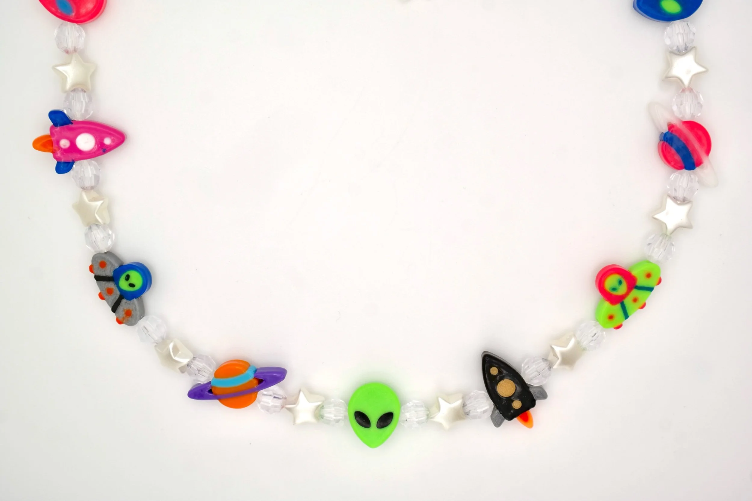 They’re magically beadlicious! Wear some childhood nostalgia around your neck with these beaded pearls and Lucky Charms marshmallows necklaces. Available in silver, with a silver extender chain hanging a silver shamrock charm, and gold with a gold extender chain hanging a small gold spoon. The pearls are uniquely shaped, and even better than cereal.