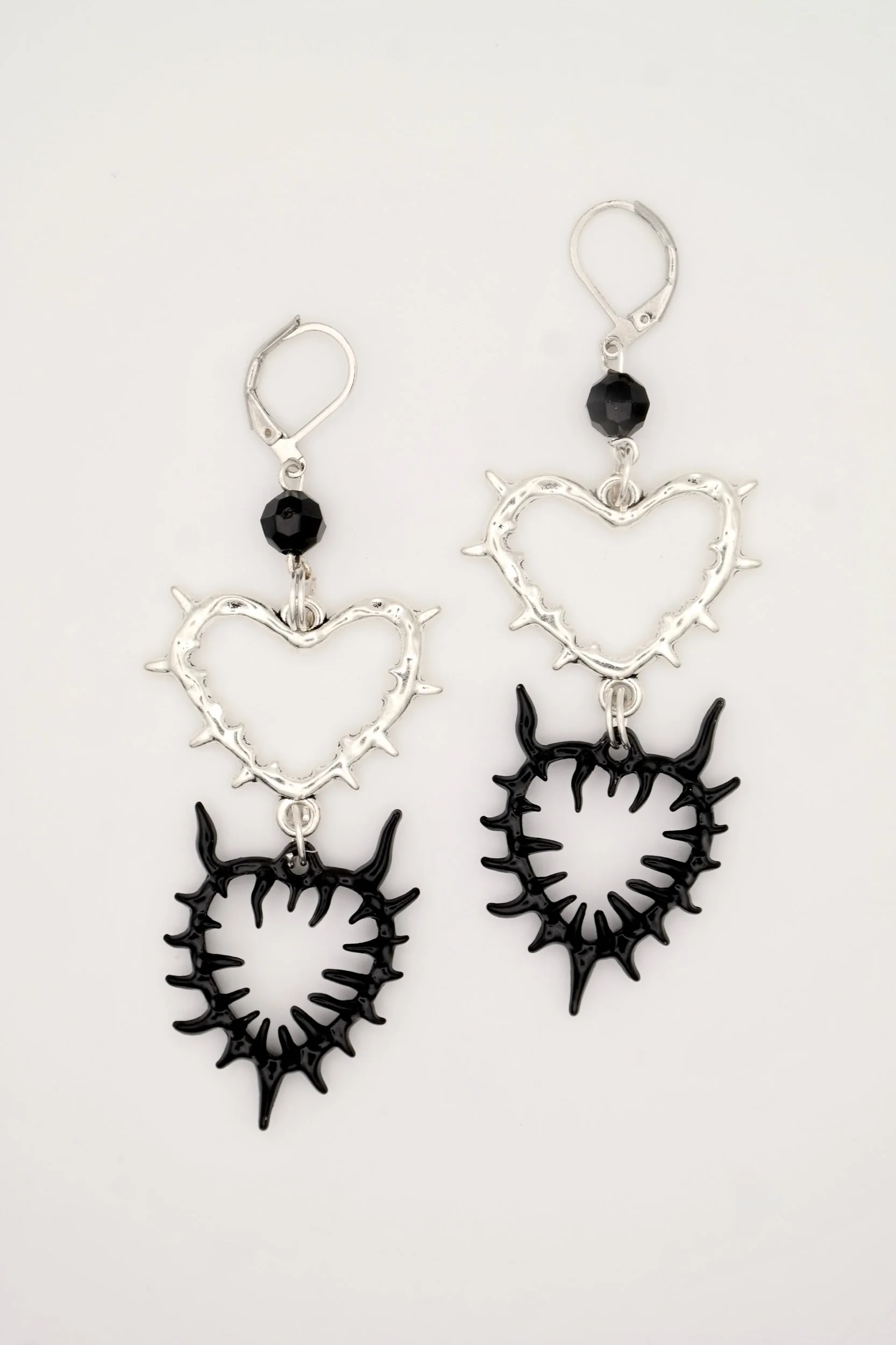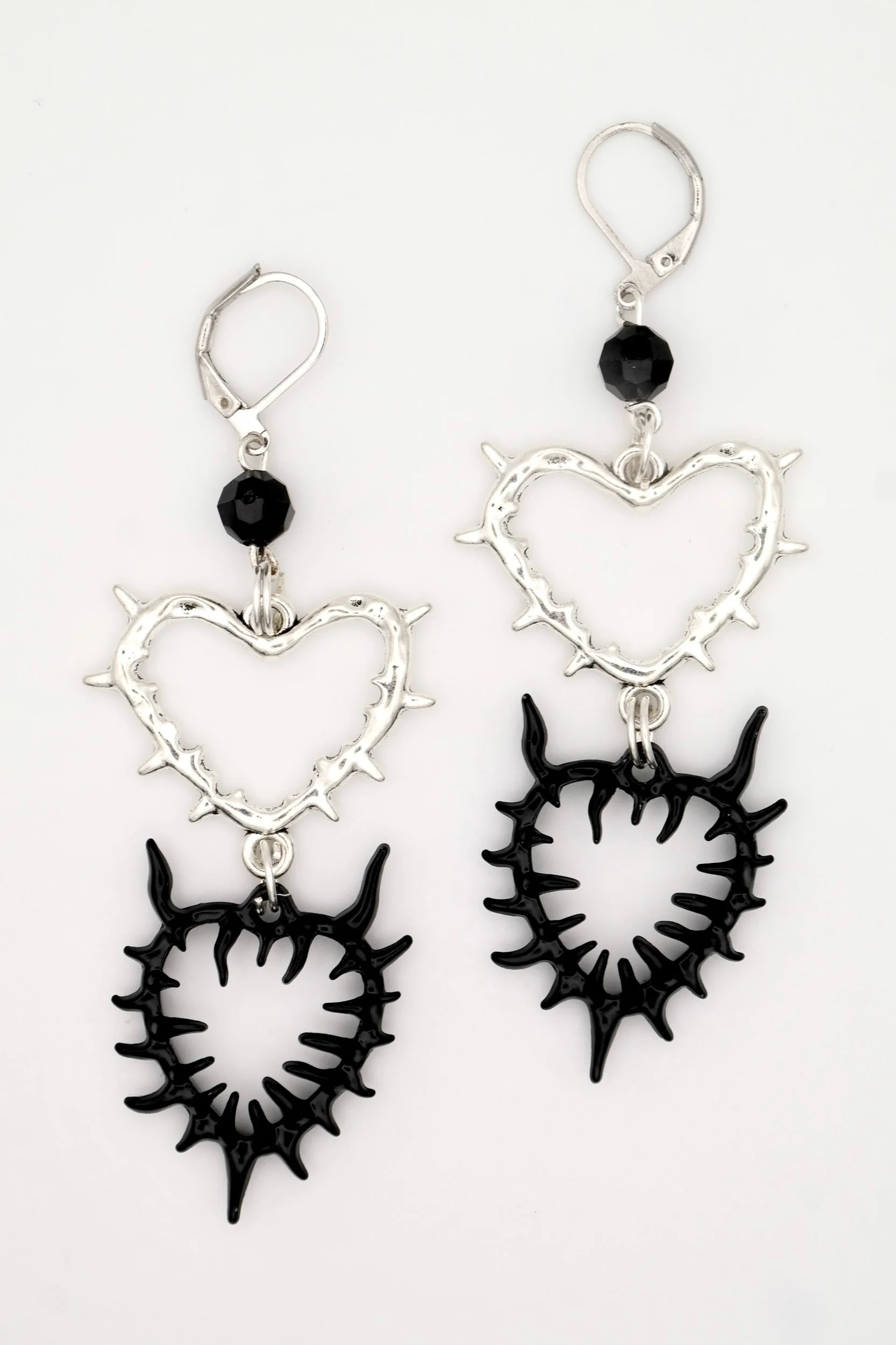 Spiky Hearts Silver & Black Earrings